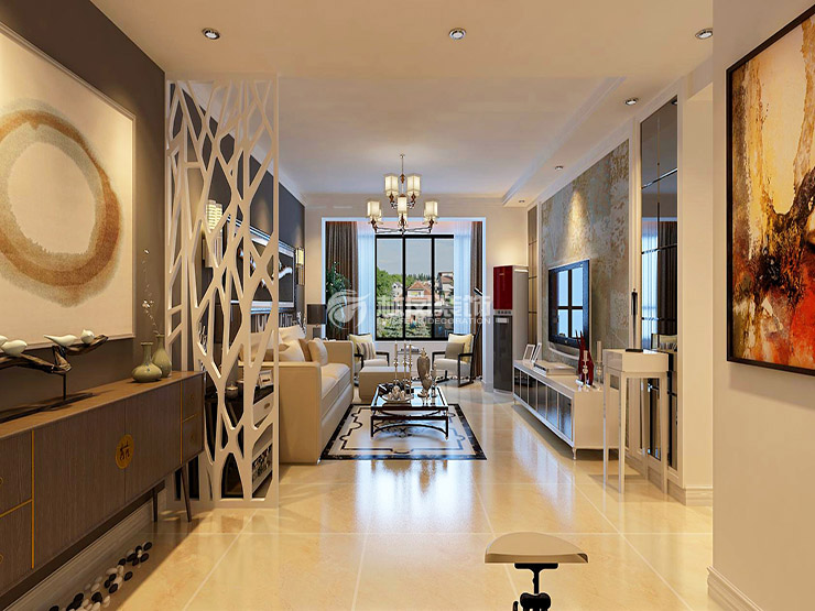 本案戶型客廳主要作用是滿足客戶生活起居,客廳沒有做過多的造型和裝飾,多以裝飾為主。電視墻搭配的是一款及鏡面材質(zhì)和壁紙石膏板三種元素為一體的背景墻。在沙發(fā)墻的左右兩側(cè)置辦一組照明吊燈,照明是一個(gè)照明兼裝飾的代表,造型不繁瑣。整體配飾溫馨舒適干干凈凈。整體吊頂是石膏角線和石膏板造型棚相結(jié)合。正好彌補(bǔ)了原始頂棚的不完美空間。