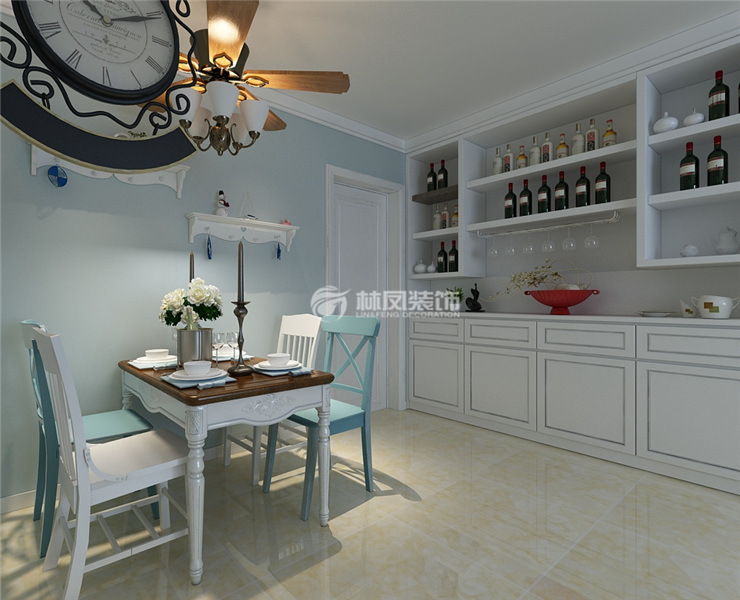 餐廳在進(jìn)門的右側(cè),非常的規(guī)整的空間,正好適合一個(gè)正常的餐區(qū)空間,距離廚房非常近更加的方便。