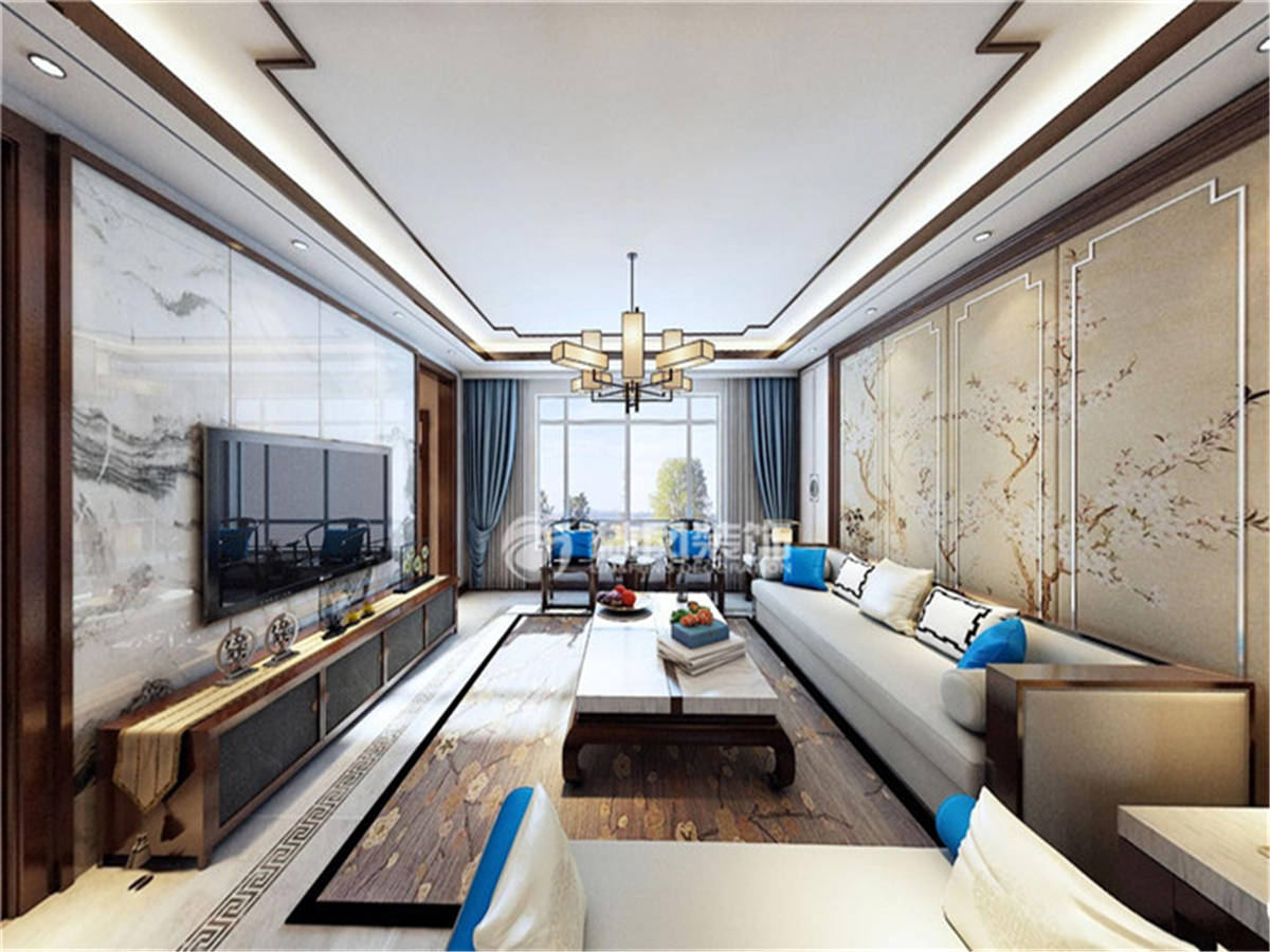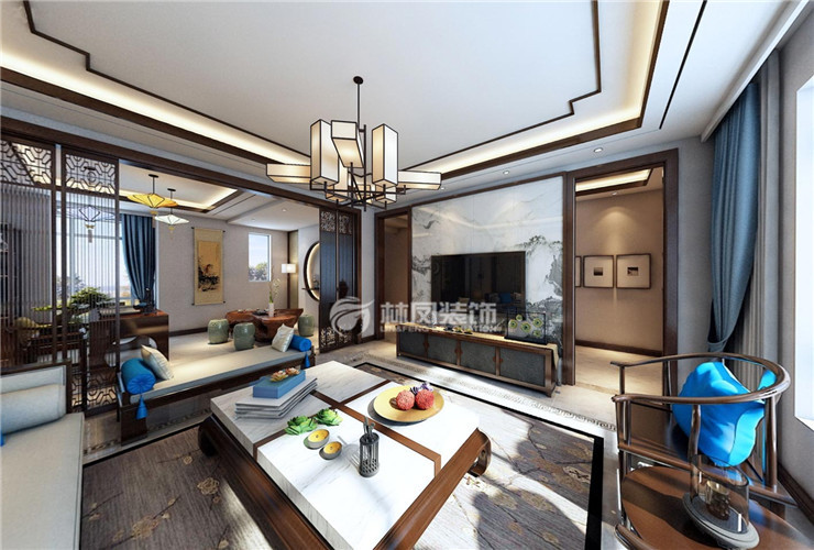 碧桂園太陽城360平3居室中式風(fēng)格林鳳裝飾的餐廳、客廳南北通透,由于開間較大,結(jié)合簡(jiǎn)單辦公功能的多功能廳,在格局和功能上為戶型添加親人的互動(dòng)氛圍。