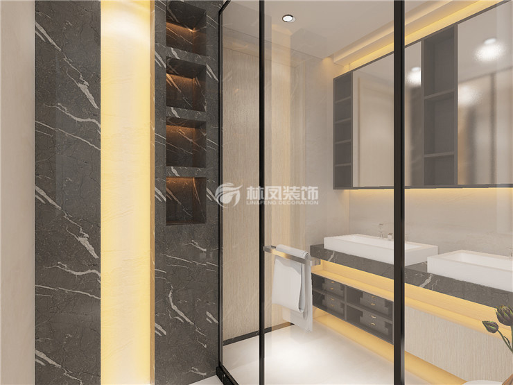 【主衛(wèi)生間說明】衛(wèi)生間是美觀與實用的結(jié)合,暗藏的設(shè)計手法把每份空間都利用的完美無瑕,而且效果很好。