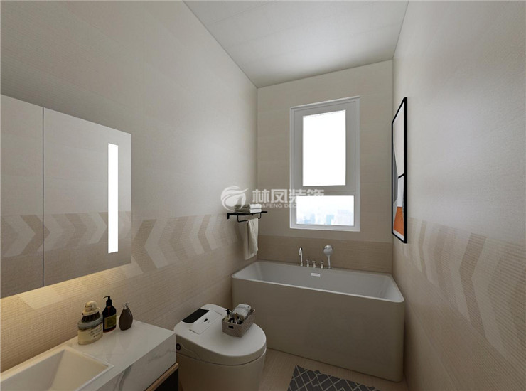 客衛(wèi)采光較弱,所以采用了淺色墻磚,爵士白的材質(zhì)較單調(diào),所以搭配了花色的水磨石瓷磚,讓本來(lái)冰冷的空間呈現(xiàn)出暖色。