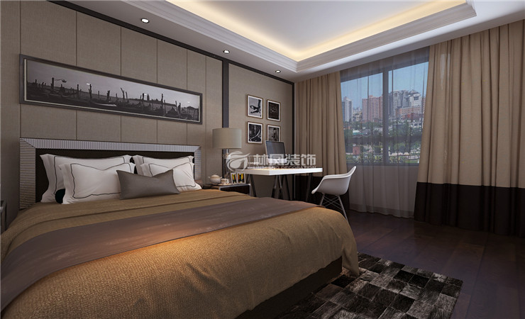 三室兩廳一廚兩衛(wèi),高層整體采用美式風(fēng)格,色調(diào)以深色為主,體現(xiàn)美式的居家感和溫馨感。