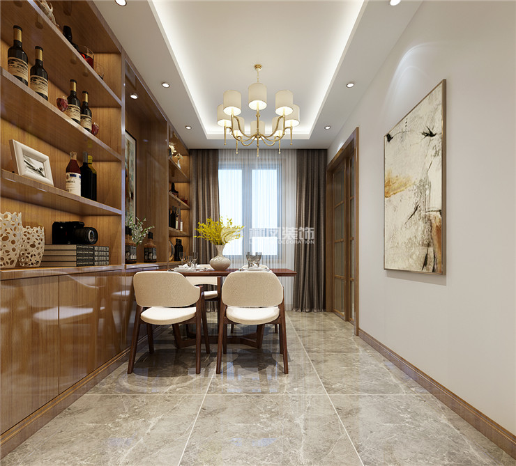 三室兩廳一廚兩衛(wèi),高層整體采用美式風格,色調以深色為主,體現美式的居家感和溫馨感。