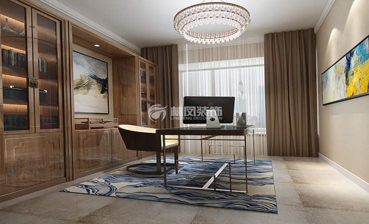 三室兩廳一廚兩衛(wèi),高層整體采用美式風(fēng)格,色調(diào)以深色為主,體現(xiàn)美式的居家感和溫馨感。