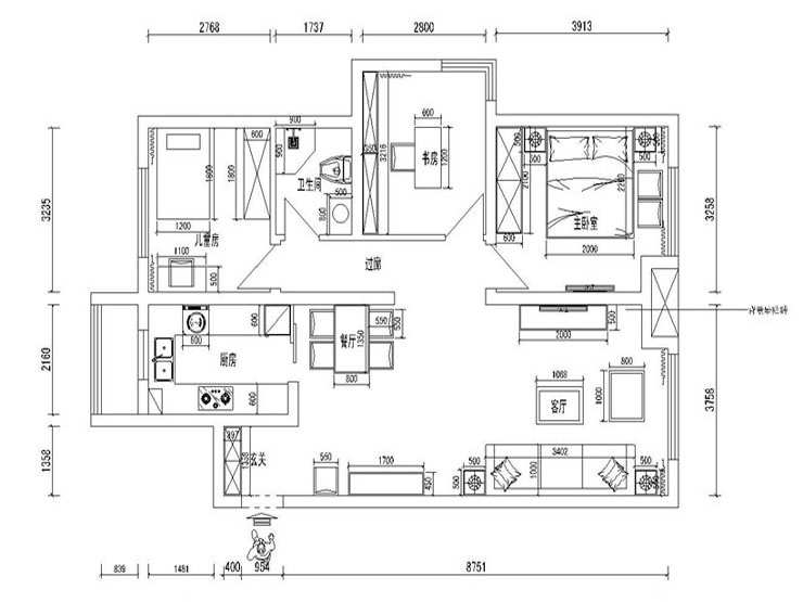 本案業(yè)主為年輕時尚小兩口,所以我們考慮到未來想要給未來寶寶一個溫馨舒適的一個房間,所以本案整體采用現(xiàn)代風格的手法,運用顏色,來打造整體空間的設計感及時尚感